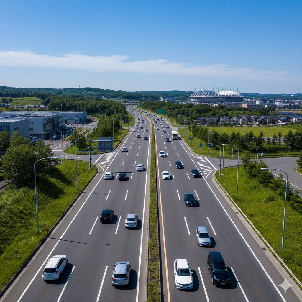 여기서 고속도로를 타면 신치토세 공항까지 약 30분이면 도착합니다. 시내 혼잡에 휘말리지 않고 매끄럽게 이동할 수 있습니다.